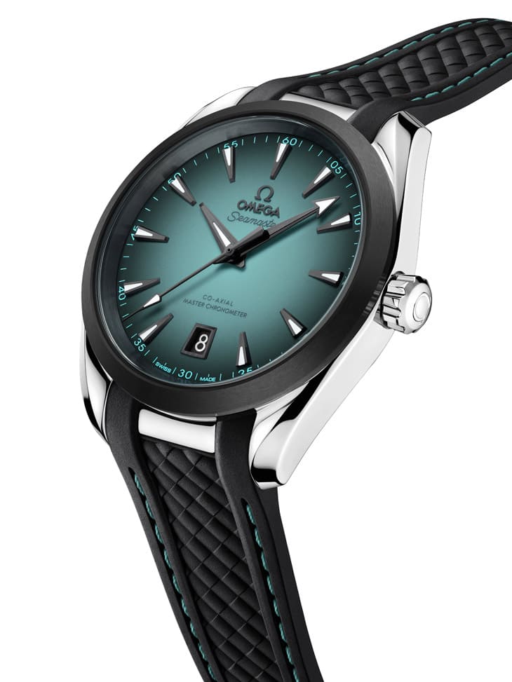 オメガ シーマスター アクアテラ 150Mシリーズに、2つ新モデルが登場。一目惚れするようなターコイズブルーアクセントに加え、マットブラックセラミックベゼルと一体型ラバーストラップを初めて採用。長年オメガ「オールラウンドウォッチ」代表的モデルとして君臨してきた本作に、より若々しく、より鮮やかな印象を与えています。